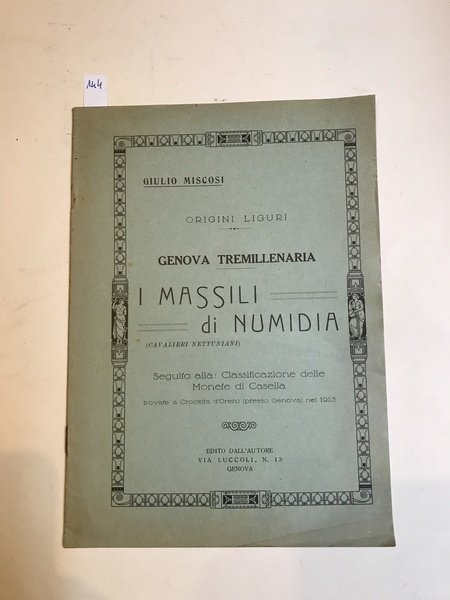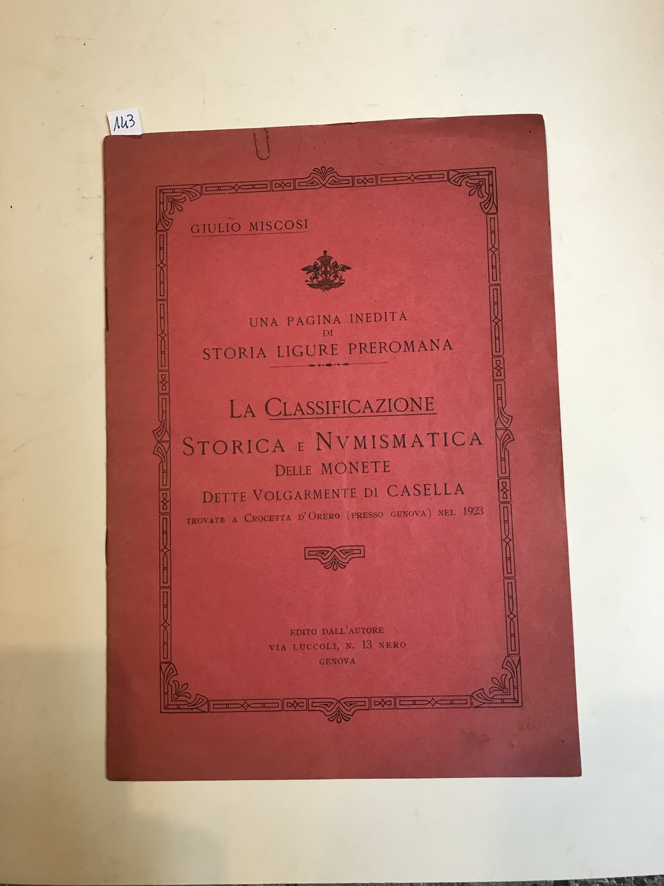 La classificazione storica e numismatica delle monete dette volgarmente di Casella trovate a Crocetta d'Orero nel 1923. Segue del medesimo autore: Origini liguri. Genova tremillenaria. I Massili di Numidia (Cavalieri Nettuniani). Seguito alla: Classificazione delle monete di Casella.