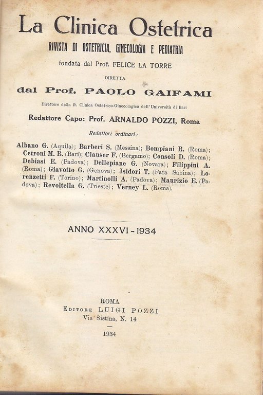 LA CLINICA OSTETRICA 1934 annata completa OSTETRICIA GINECOLOGIA Libro rivista