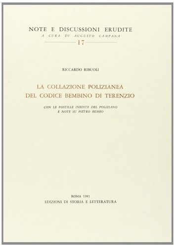 Con le postille inedite del Poliziano e note su Pietro Bembo. Roma, Ediz.di Storia e Letteratura 1981, cm.17x24, pp.90, VI tavv.bn.ft. brossura Coll.Note e Discussioni Erudite,17. STATO: NUOVO. EAN: 9788884986818