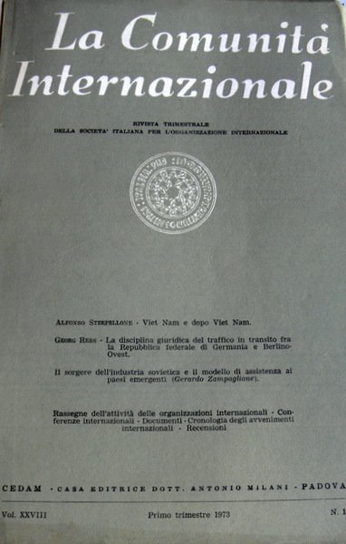 LA COMUNITÀ INTERNAZIONALE. (VOLUME XXVIII; PRIMO TRIMESTRE 1973; N. 1)