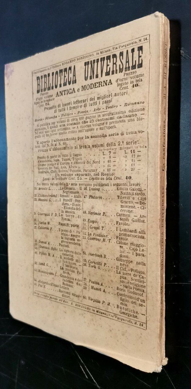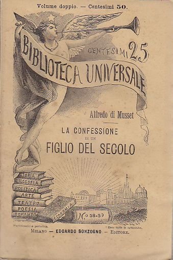 LA CONFESSIONE DI UN FIGLIO DEL SECOLO di Alfred De Musset Edoardo Sonzogno editore, Collana Biblioteca Universale n 58-59, 1883.