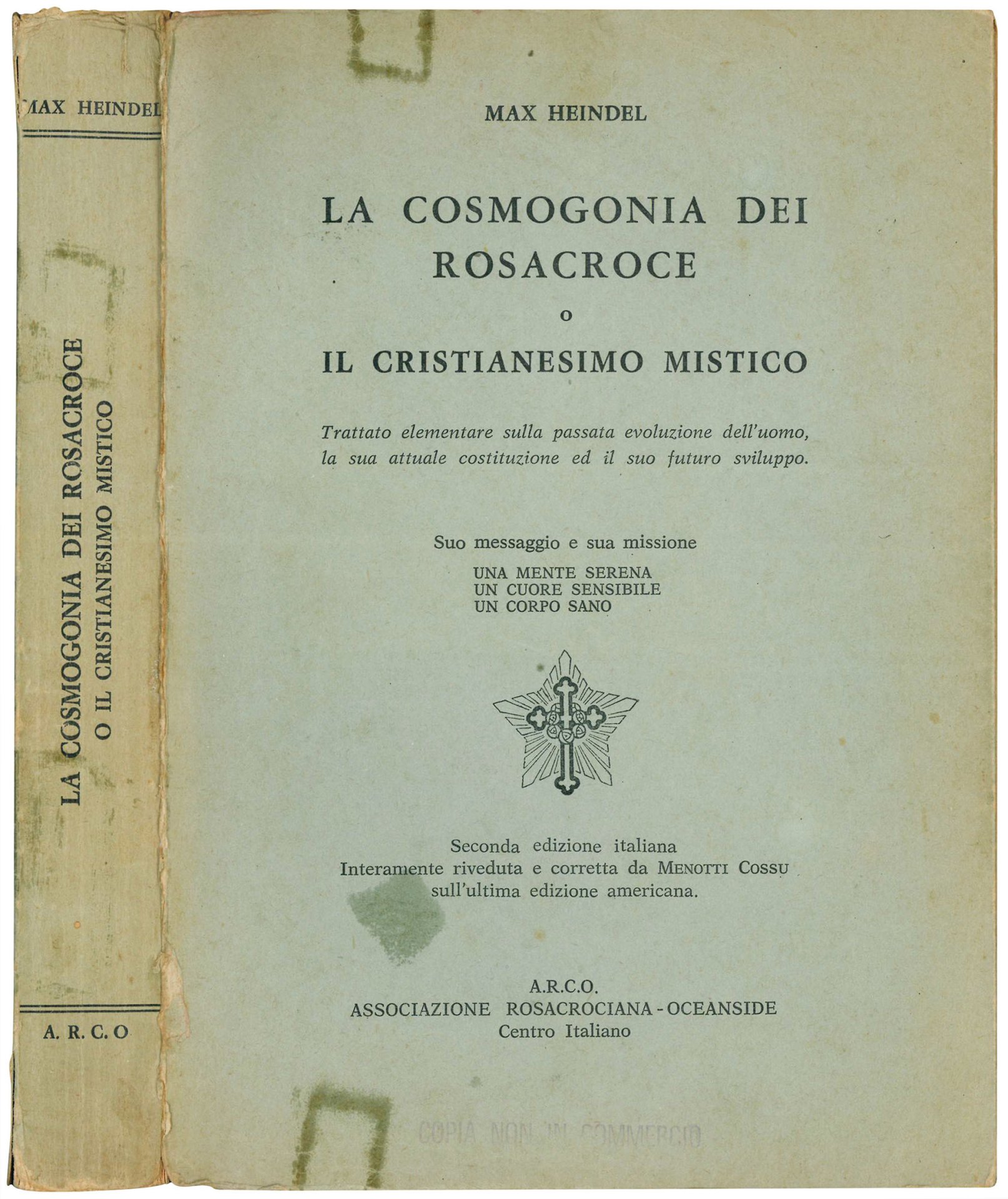 La cosmogonia dei Rosacroce o il Cristianesimo mistico. Trattato elementare sulla passata evoluzione dell'uomo, la sua attuale costituzione ed il suo futuro sviluppo. Suo messaggio e sua missione. Seconda edizione italiana interamente riveduta e corretta da Menotti Cossu sull'ultima edizione americana.