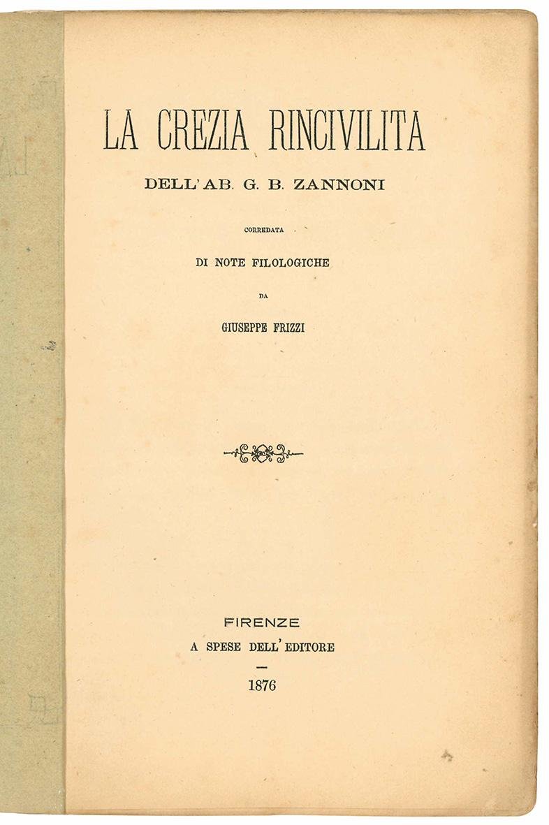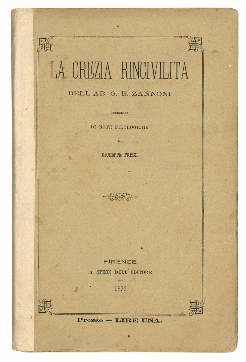 La Crezia rincivilita dell'Ab. G.B. Zannoni corredata di note filologiche da Giuseppe Frizzi.