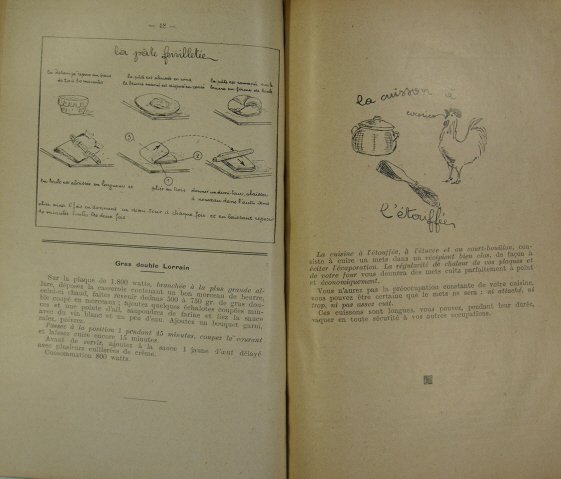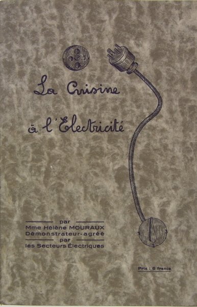 1938. Petit in/4 broché, couverture illustrée, illustrations in-texte, 93 p. Avant dernier feuillet avec manque de papier (mais le texte semble entier).Nombreuses recettes pour une “nouvelle” façon de cuisiner : avec l’électricité en 1938.