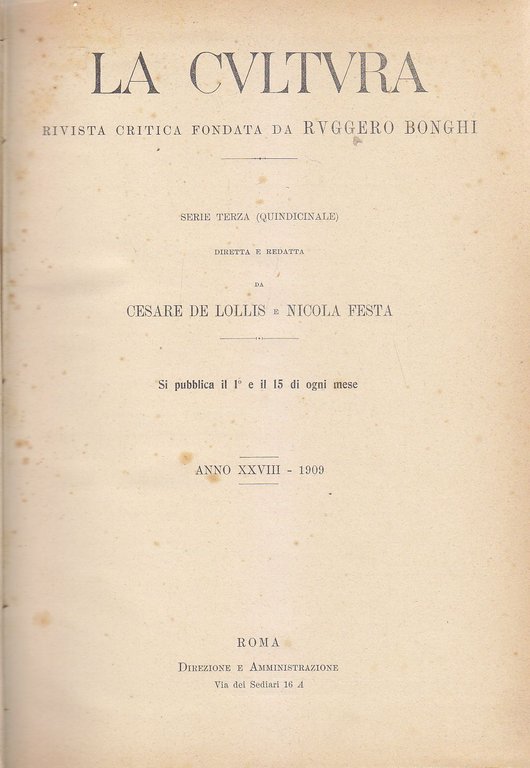 LA CULTURA 1909 annata completa 24 numeri rivista critica Bonghi Laterza antica
