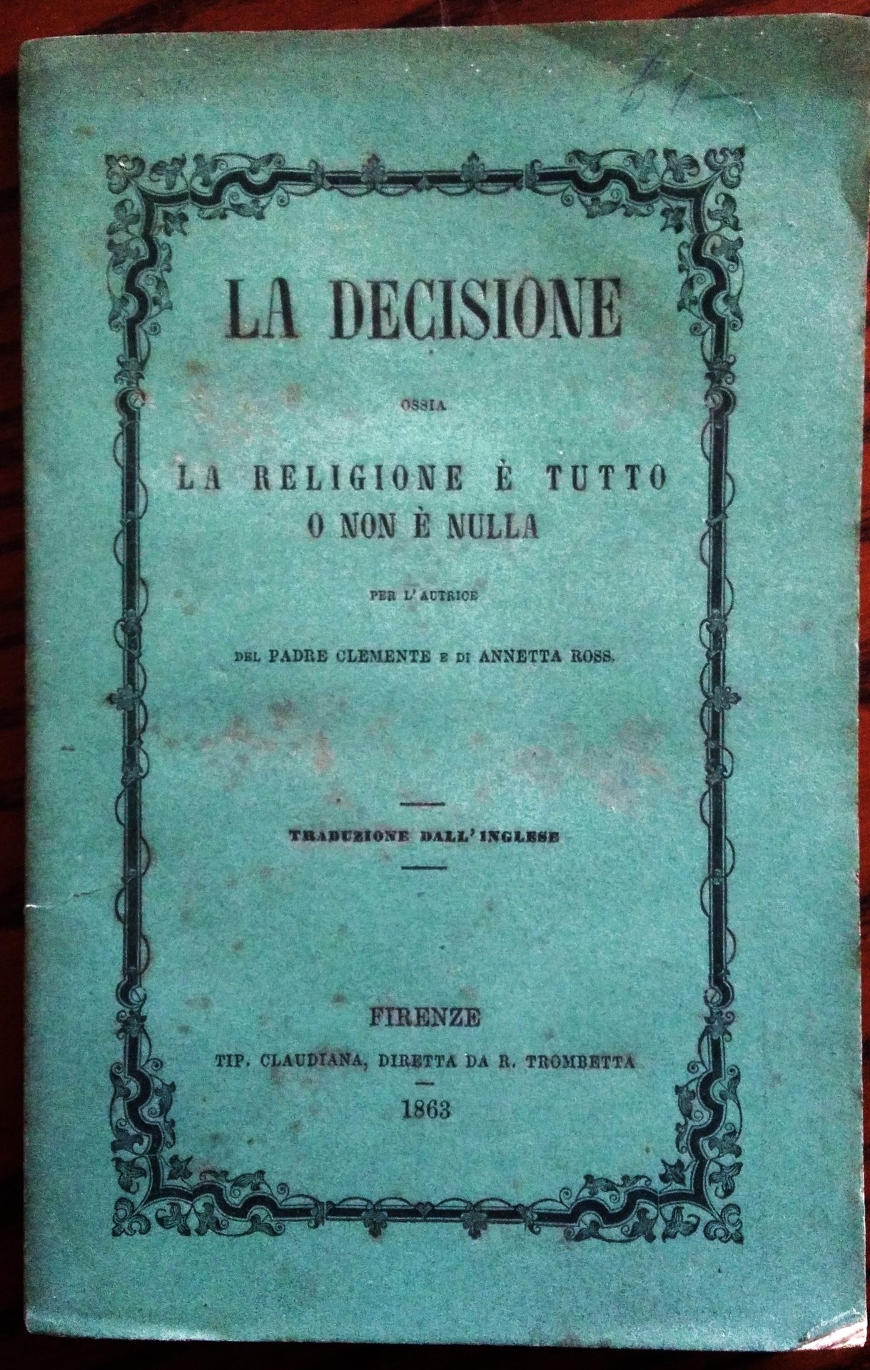 La decisione ossia la religione e tutto o non e nulla per l'autrice del Padre Clemente e di Annetta Ross. Traduzione dall'inglese.