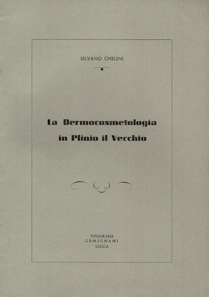 "La Dermocosmetologia in Plinio il Vecchio", edizione settembre 1962, pp. 9, formato 17 x 24.
