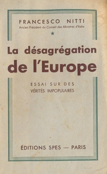 La desagregation de l'Europe. Essai sur des vérités impopulaires.
