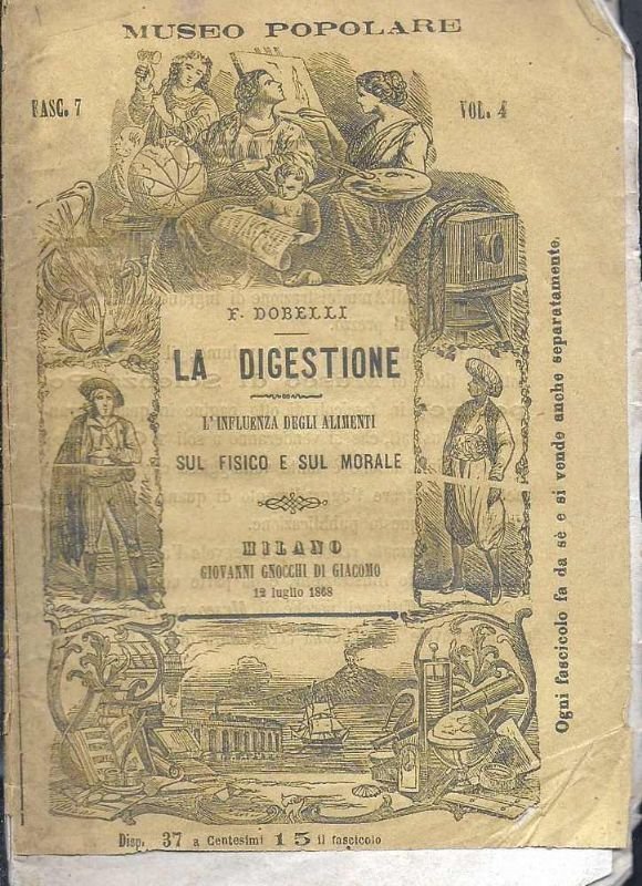Opuscolo In-16°, legatura in brossura editoriale, pp. 32, con figure incise nel testo. (Edizione popolare). Tracce del tempo.