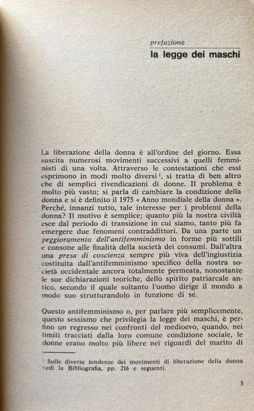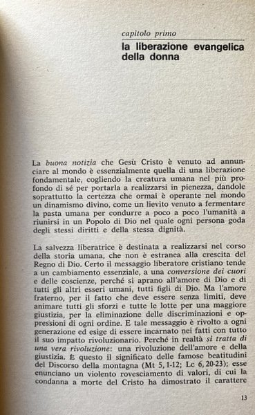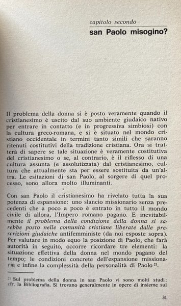 Soggetti: Religione, Spiritualità, Donna, Concezione cattolica, Teologia, Filosofia, Antifemminismo, Storia di genere, Donne, Chiesa, Cristianesimo, Cattolicesimo, Morale, Etica, Famiglia, Figli, Procreazione, Aborto, Anni Settanta, L'exil féminin, Liberazione, Valori morali, Uomini, Maschilismo, Patriarcato, Potere, Matrimonio, Sottomissione, Emancipazione, Dipendenza, Dominazione, Sessualità, Differenze, Società, Diritto, Dio, Gruppi sociali, l'Église, l'Évangile, Chrétienne, Christ, Christianisme, Amore, Pères, Dialettica, Relazioni affettive, Liberazione, Ruoli, Uguaglianza, Subordinazione, Saggi, Classici, Bibliografia, Riferimento, Libri Vintage Fuori catalogo, Femministe, Femminismo, Misoginia, Storia, Cultura, Mentalità, Misogynes, Féministes, Histoire Sociale, Tradizioni culturali, Natura, Maschi, Condizione, San Paolo, Scrittura, Bibbia, Prescrizioni giudaiche, Ebraismo, Giudaismo, Salvezza, Conversione, Pastorale, Gesù Cristo, Discorso della montagna, Dio, Rivoluzione evangelica, Giustizia, Teologi francesi, Teorie, Miti, Narcisismo, Sacerdozio femminile, Discriminazione, Lavoro, Vangelo, Oppressione, Carne, Disprezzo, Ascetismo, Misticismo, Castità, Licenza dei costumi, Immagine virile, Patristica, Padri, Verginità, Emarginazione canonica, Eva, Adamo, Peccato originale, Schiavitù, Tentazione, Mariologia, Maria, Speculazione, Corpo, Fallo, Simboli, Idealizzazione, Oggetto, Erotismo, Maternità, Paternità, Iconografia, Contraccezione, Sacerdoti, Preti, Sacramenti, Ordine, Dottrina, Simone De Beauvoir, Pelle Douel, Psicologia, Deutsch, Buytendijk, Duche, Betty Friedan, Virginia Wolff, Sullerot, Marxismo, Mauduit, Rivolta, Leclerc, Benoit, Edgar Morin, Leipoldt, Edith Stein, Chiara Saraceno, Natalia Aspesi, Cerroni, Ida Magli, Sibilla Aleramo, Adele Faccio, Franco Fornari, Religion, Spirituality, Woman, Catholic conception, Theology, Philosophy, Antifeminism, Gender history, Women, Church, Christianity, Catholicism, Moral, Ethics, Family, Children, Procreation, Abortion, Seventies, Liberation, Values, Men, Patriarchy, Power, Marriage, Submission, Emancipation, Dependence, Domination, Sexuality, Differences, Society, Law, God, Social groups, Love, Dialectics, Affective relationships, Liberation, Roles, Equality, Subordination, Essays, Classics, Bibliography, Reference, Out of print books, Feminists, Feminism, Misogyny, History, Culture, Mentality, Cultural traditions, Nature, Males, Condition, Saint Paul, Scripture, Bible, Jewish prescriptions, Judaism, Judaism, Salvation, Conversion, Pastoral, Jesus Christ, Speech Mountain, God, Evangelical revolution, Justice, French theologians, Theories, Myths, Narcissism, Female priesthood, Discrimination, Work, Gospel, Oppression, Flesh, Asceticism, Mysticism, Chastity, License of morals, Virile image, Patristic, Fathers, Virginity, Canonical marginalization, Eve, Adam, Original sin, Slavery, Temptation, Mariology, Speculation, Body, Phallus, Symbols, Idealization, Object, Eroticism, Maternity, Paternity, Iconography, Contraception, Priests, Sacraments, Order, Doctrine, Psychology, Revolt