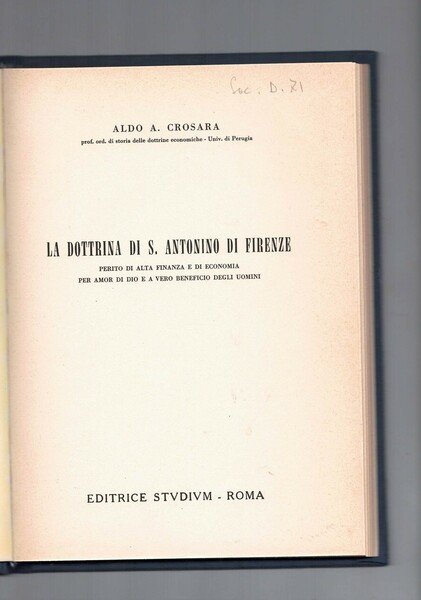 La dottrina di S.Antonino di Firenze perito di alta finanza e di economia per amor di dio e a vero beneficio degli uomini