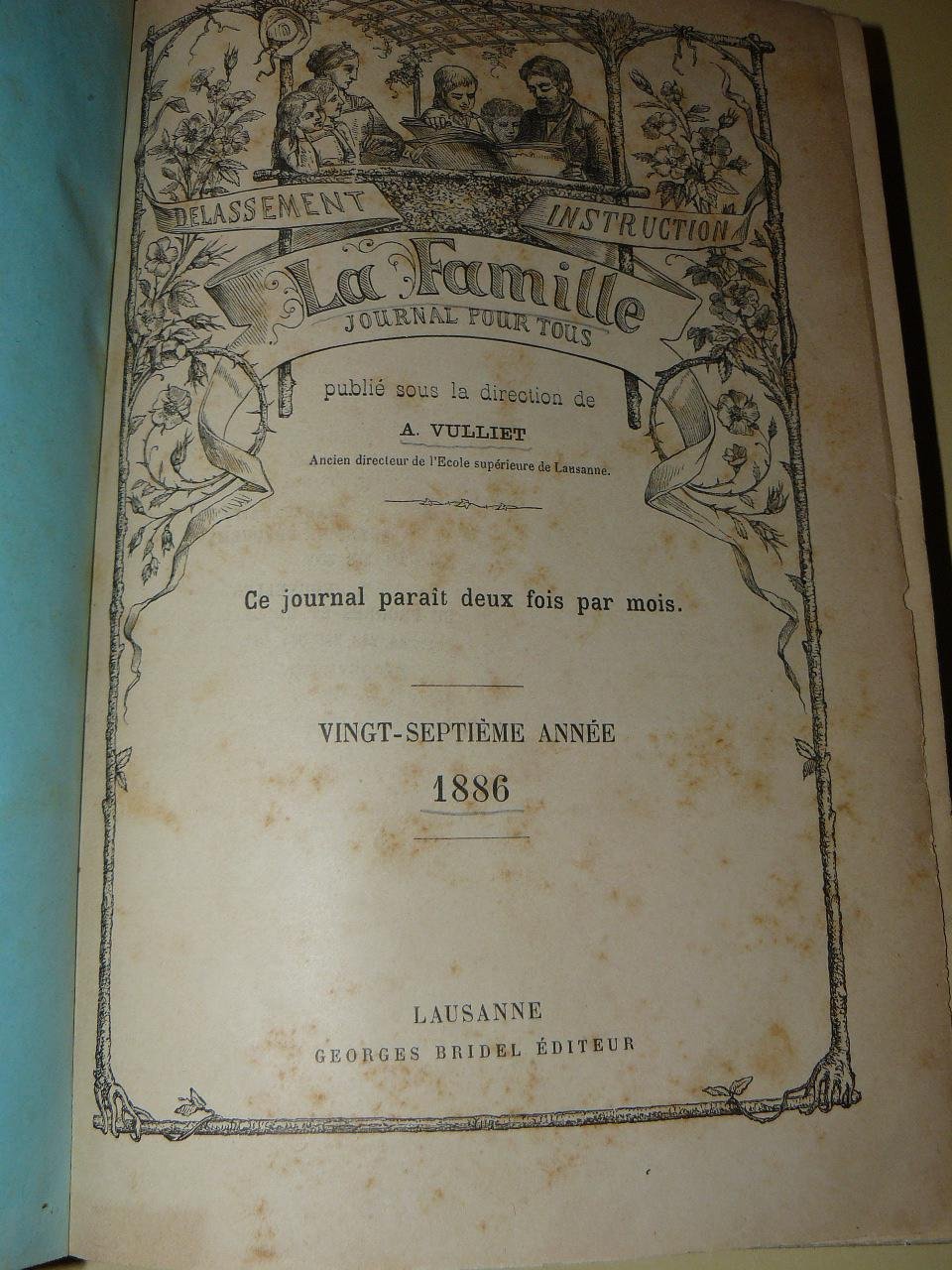 La famille. Journal pour tous publié sous la direction de A. Vulliet. Ce journal parait deux fois par mois
