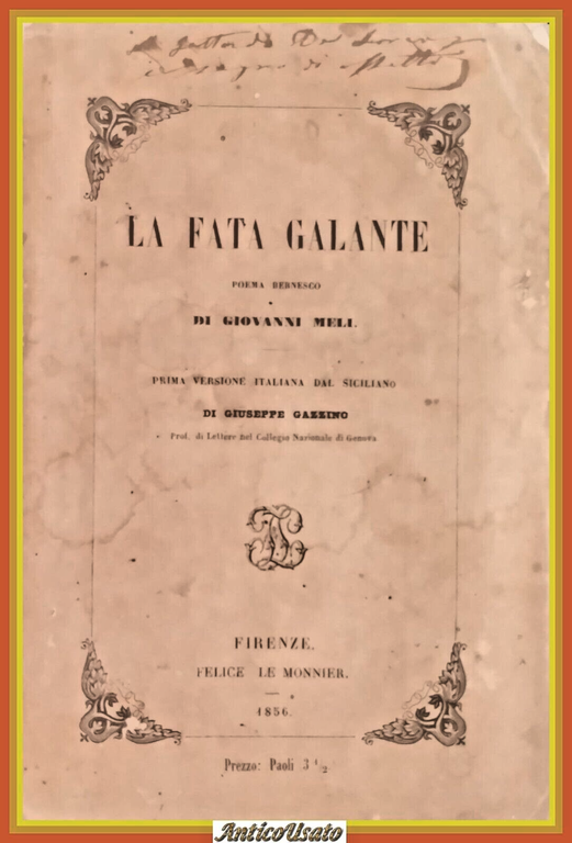LA FATA GALANTE POEMA BERNESCO di Giovanni Meli 1856 Le Monnier Libro antico