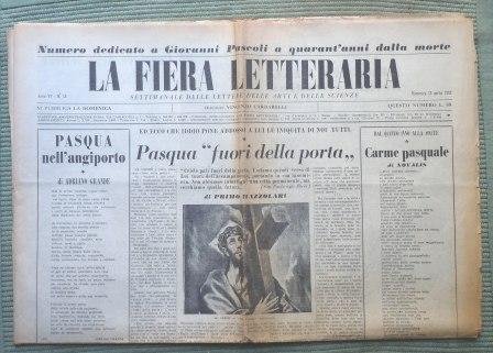 LA FIERA LETTERARIA - SETTIMANALE DELLE LETTERE DELLE ARTI E DELLE SCIENZE - NUMERO DEDICATO A GIOVANNI PASCOLI A QUARANT'ANNI DALLA MORTE - N. 15 DEL 13 APRILE 1952