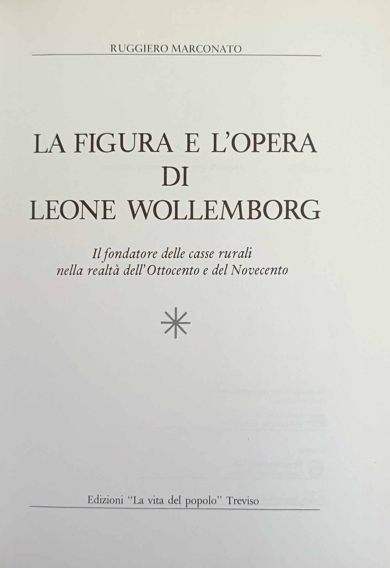 LA FIGURA E L' OPERA DI LEONE WOLLEMBORG. IL FONDATORE DELLE CASSE RURALI NELLA REALTÀ DELL' OTTOCENTO E DEL NOVECENTO