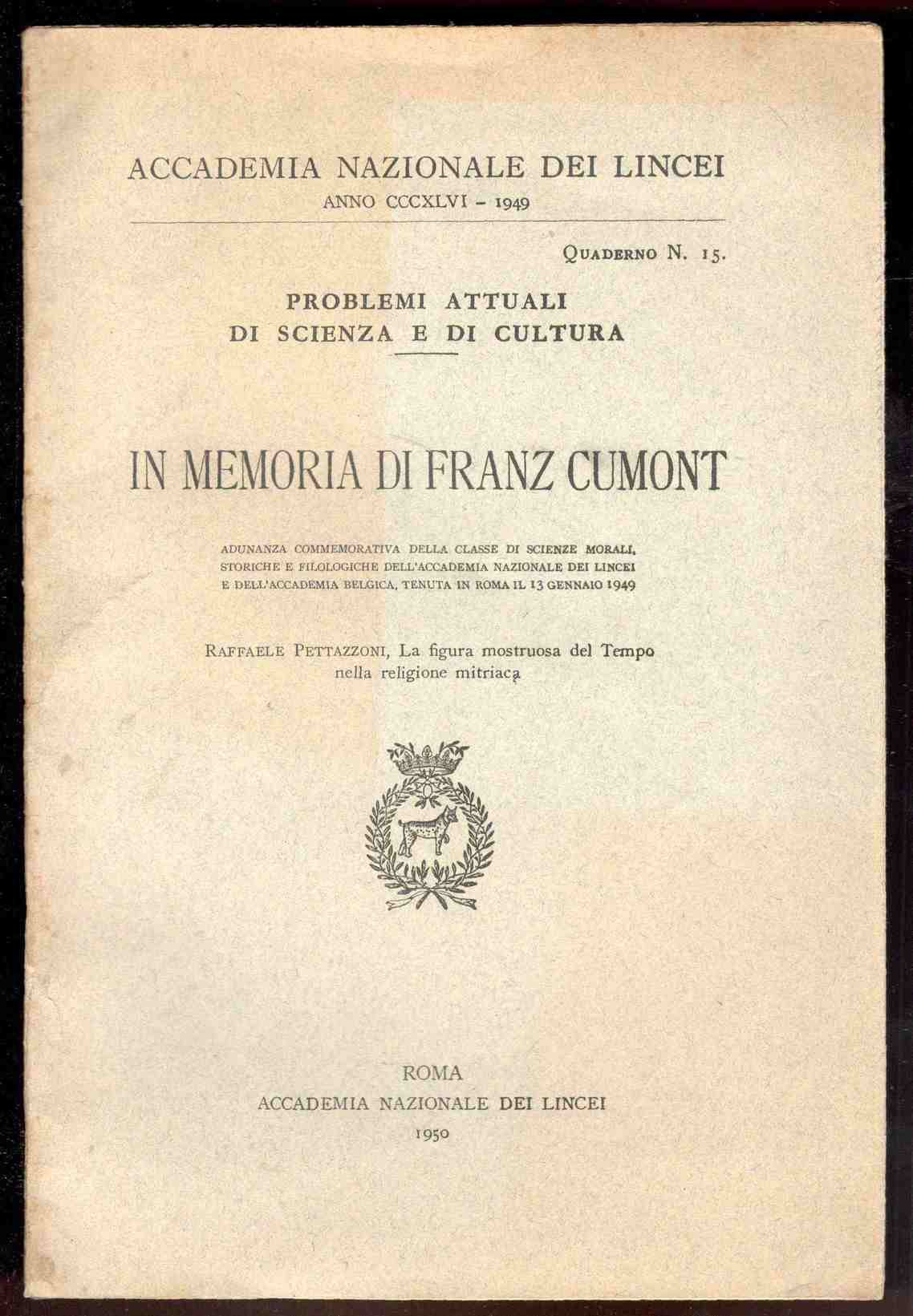 La figura mostruosa del Tempo nella religione mitriaca. Pubblicazione in memoria di Franz Cumont | Libri antichi e moderni | Pettazzoni, Raffaele