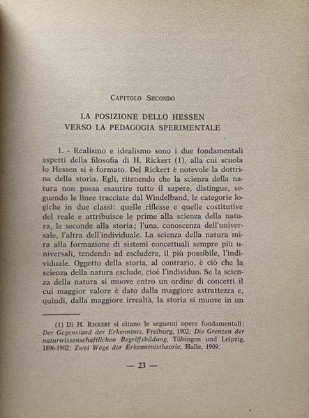 Chi leggesse il libro, credendo di trovarvi una tratta zione particolareggiata dei problemi educativi e scolastici dello Hessen, rimarrebbe insoddisfatto. Scritti di tal genere ve ne sono già e non è nostra intenzione aumentarne il numero. Vogliamo piuttosto saggiare se vi sia, e in che misura, originalità speculativa nell'autore, anche al fine di rilevare gli eventuali limiti della sua dottrina.
