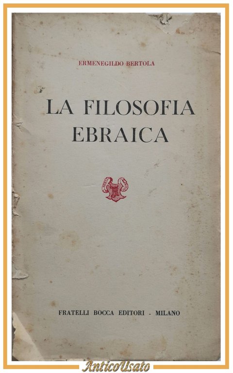 LA FILOSOFIA EBRAICA di Ermenegildo Bertola 1947 Fratelli Bocca libro