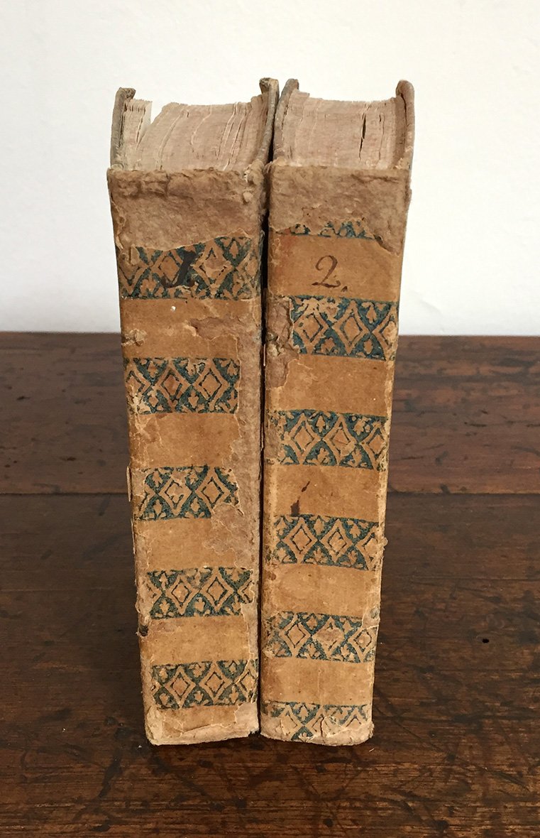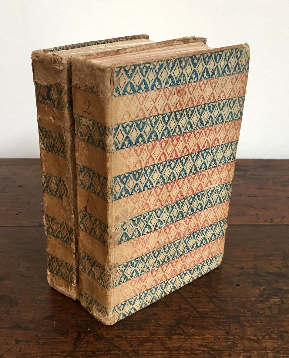 Due volumi in 16mo (mm 148x95); pp. 487, [1]; 464. Segnatura: A-Gg8Hh4; A-Ff8. Piccolo fregio xilografico ai frontespizi. Alone e bruniture che interessano il fascicolo A del primo volume, e che vanno progressivamente attenuandosi. Lievissimi aloni marginali.