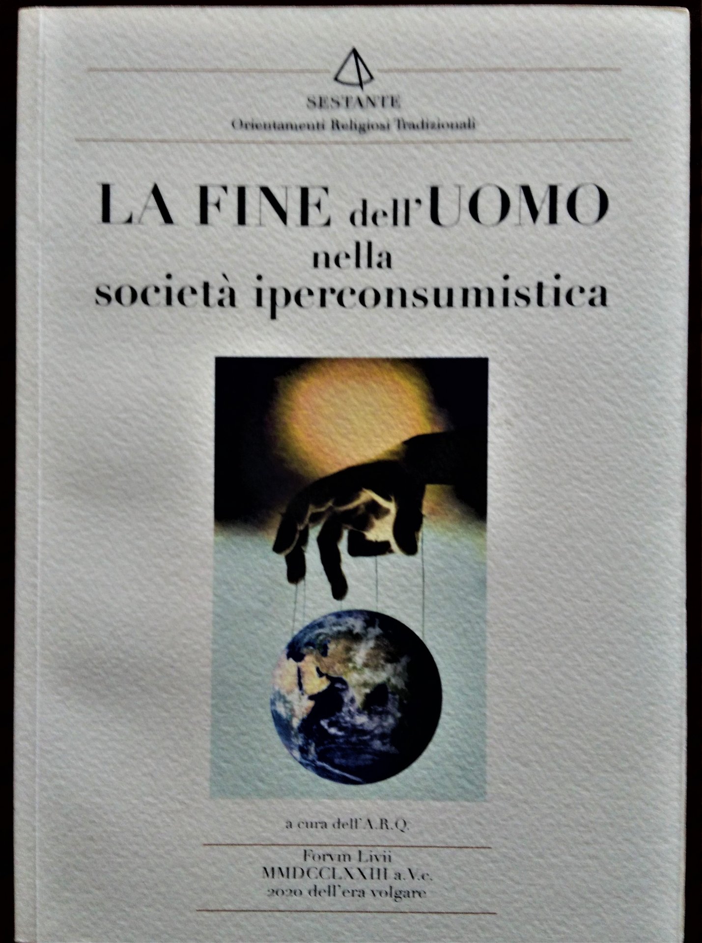 La fine dell'uomo nella società iperconsumistica. A cura dell'A.R.Q. Il testo.è redatto dal gruppo di studiosi tradizionali dell'Associacione Romània quirites.