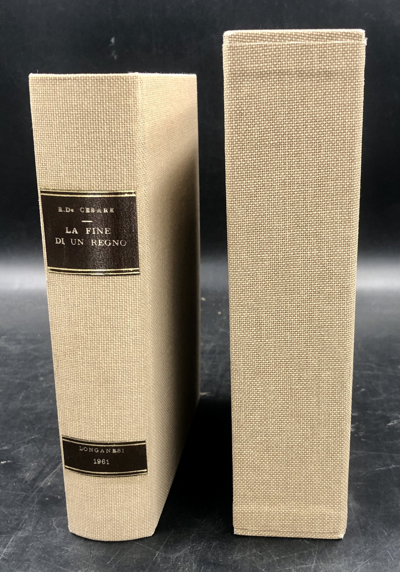 Spesso volume in-16° (cm. 17,8x12,4), pp. 931 + LE 12 tavole F.T. raffiguranti gli antichi costumi del Regno di Napoli. Robusta e bella legatura posteriore in tela rustica, tit. e dati oro su doppio tassello in pelle al dorso. Robusta custodia muta in cartone ricoperto con la stessa tela. Notevole testimonianza sugli ultimi anni del Regno delle Due Sicilie, da Ferdinando II a Francesco II, ed il crollo della dinastia borbonica. Si tratta del vol vol. XII della celebre collana "I cento libri Longanesi ", in ottima legatura che però NON è quella originale.