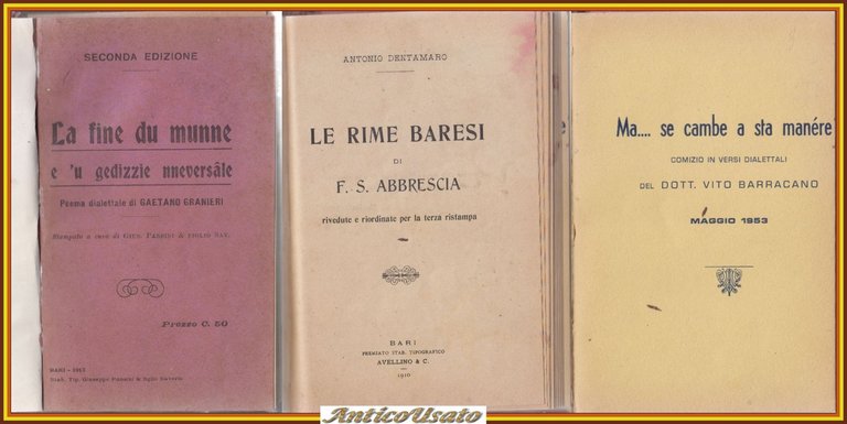 Stabilimento Tipografico Pansini, 1912, Stabilimento Tipografico Avellino, 1910, Autoprodotto maggio 1953. 113 + 125 + 32 pagine, fotoritratto di Granieri all'antiporta del primo volume. Copertina in tutta tela muta, conserva il piatto anteriore del primo volume ed entrambi i piatti del terzo volume. Stato di conservazione: buono (pagine ingiallite, fioriture, il terzo volume è stato rifilato, residuo odore e tracce di muffa, copertina sporca)