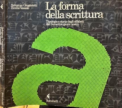 Tipologia e storia degli alfabeti dai Sumeri ai giorni nostri. In 8° (cm 27,6 x 19,8), pp. 393. Bross. tit. bianco al dorso nero. Lievi segni di consunzione ai margini e alle cuffie. Alone d' umidità all'occhietto. Tracce di polvere. Buone condizioni.