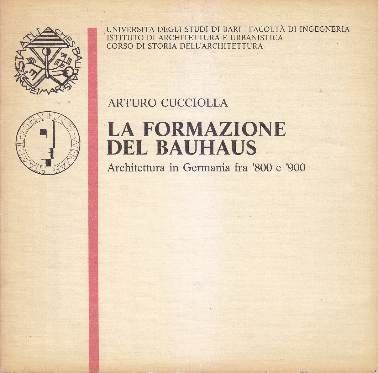 La Formazione Del Bauhaus di Arturo Cucciolla 1984 Edipuglia libro architettura