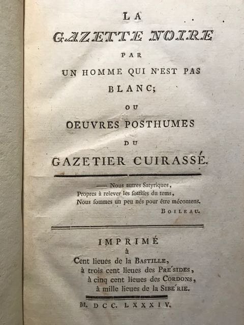 La gazette noire par un homme qui n'est pas blanc; ou oeuvres posthumes du gazetier cuirassé.