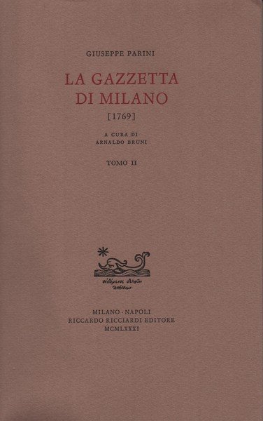 La Gazzetta di Milano , (1769). A cura di Arnaldo Bruni. Tomo II
