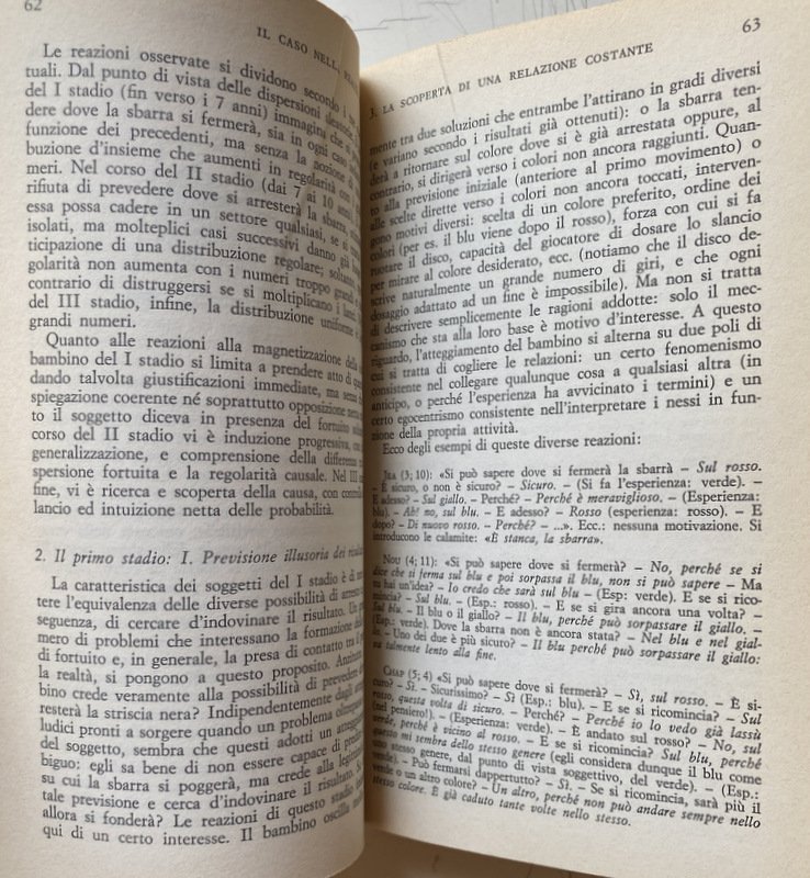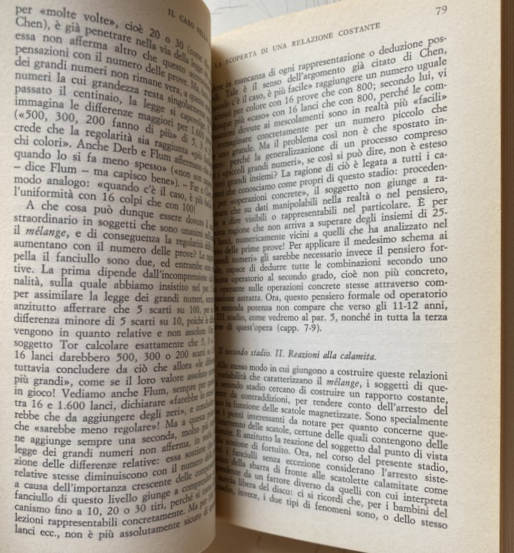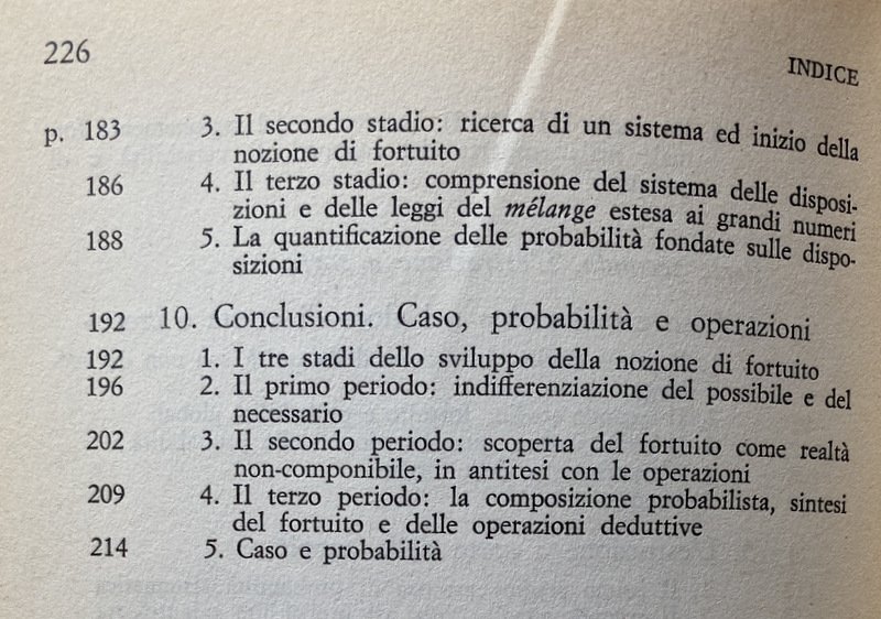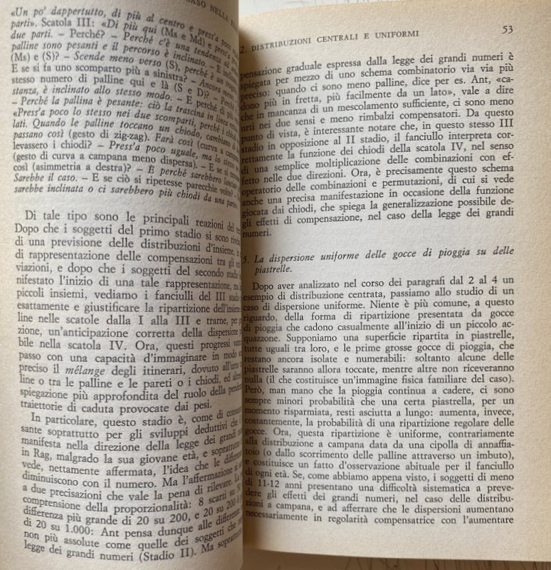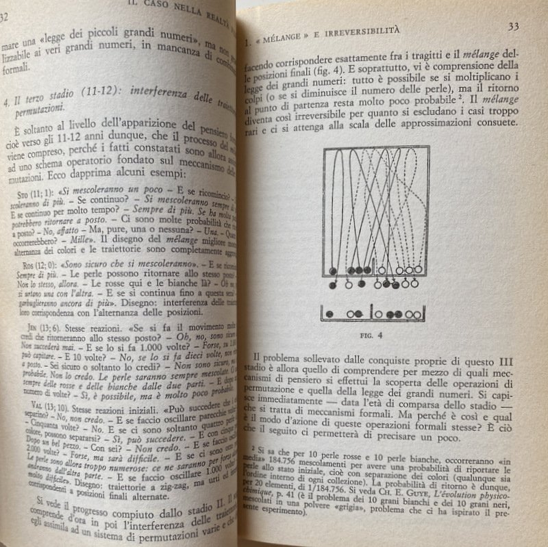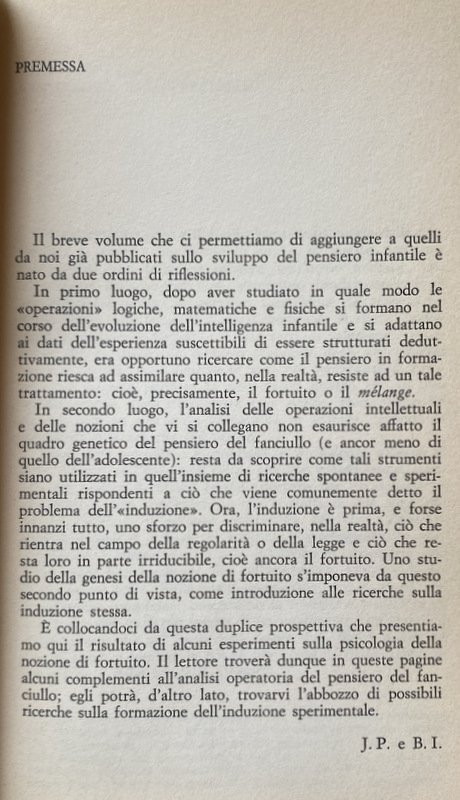 «È collocandoci da questa duplice prospettiva che presentiamo qui il risultato di alcuni esperimenti sulla psicologia della nozione di fortuito. Il lettore troverà dunque in queste pagine alcuni complementi dell'analisi operatoria del pensiero del fanciullo e insieme l'abbozzo di possibili ricerche sulla formazione dell'induzione sperimentale».