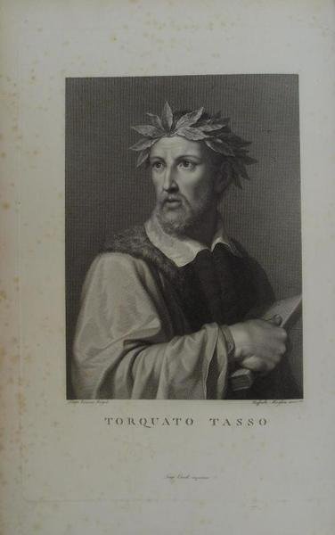 Due volumi in folio di cm. 40, pp. (8) xvi, 331 (1); (4) 337 (3). Bellissimo ritratto di Tasso all'antiporta del primo volume inciso da Raffaello Morghen. Legatura in cartonato rigido marmorizzato con titoli a stampa su etichette ai dorsi. Esemplare marginoso (in barbe) e ben conservato con qualche lieve brunitura e poche arrossature limitate alle prime carte del primo volume. Sontuosa ed elegante edizione impressa in soli 250 esemplari ad personam. Il presente porta il n. 210 ed è impresso per il signor Artaria di Manheim. L'opera è preceduta dalla dedica a Giuseppe Napoleone e dalla vita del poeta. Cfr. coll. Tassiana e Gamba (248).