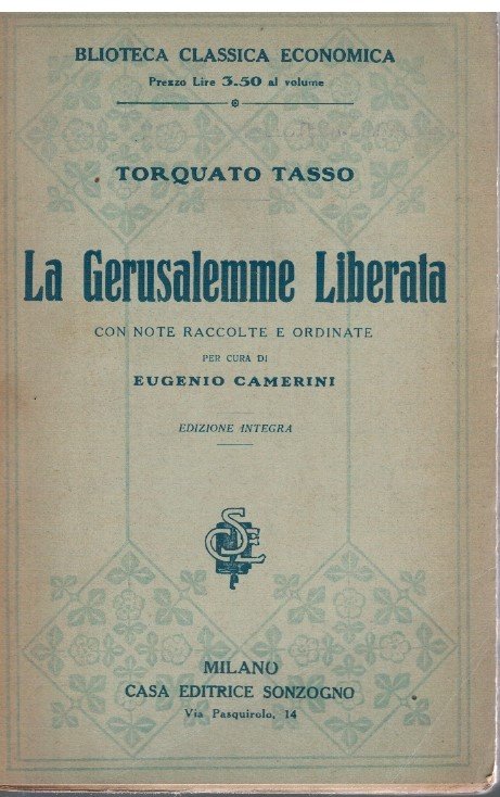Opera ben conservata normali segni del tempo, legatura solida in barbe. Bella edizione del Tasso.