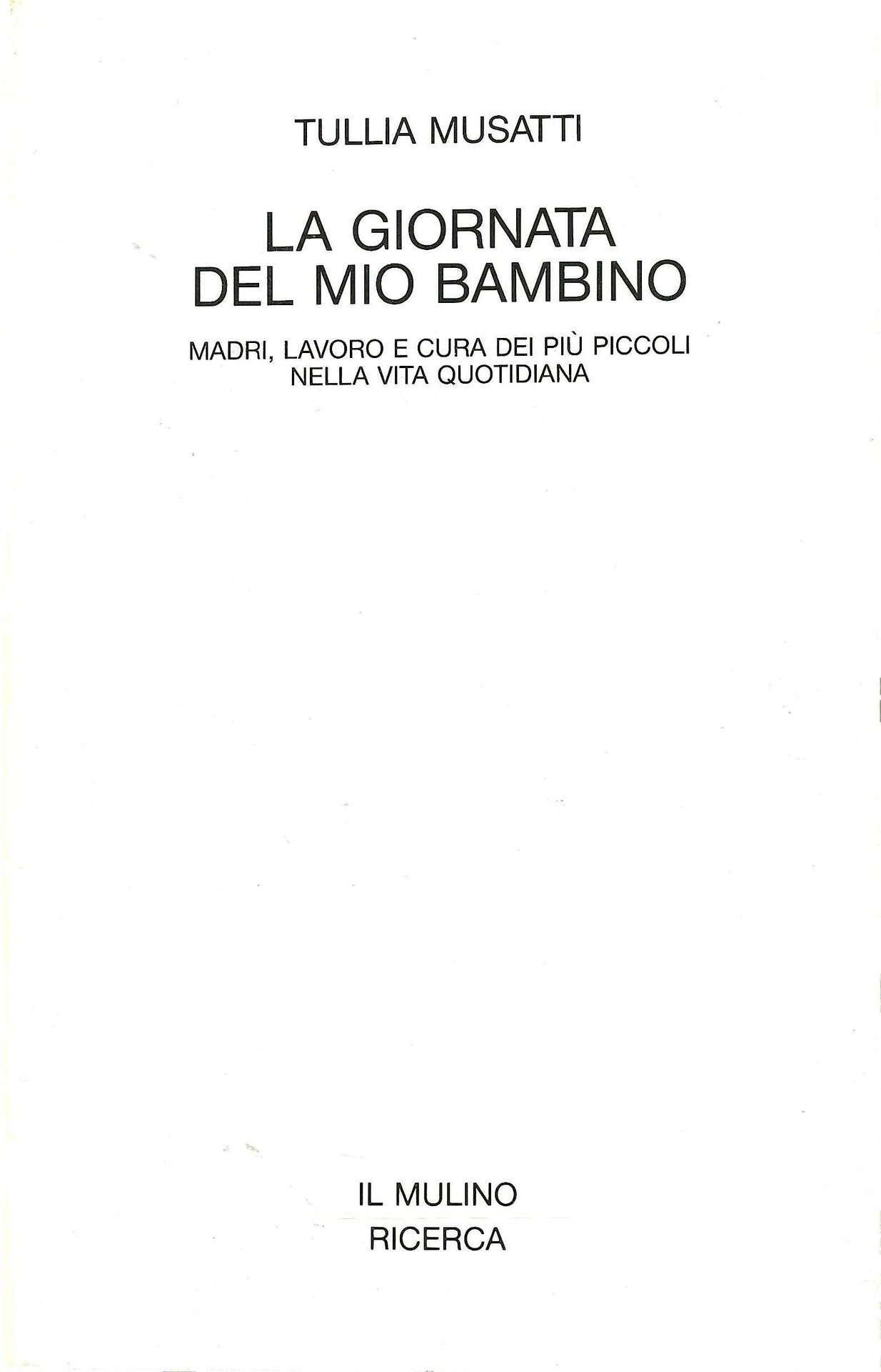 Musatti Tullia, La giornata del mio bambino. Madri, lavoro e cura dei più piccoli nella vita quotidiana, Il Mulino Ricerca, 1992.In-8 (Cm 21,3x13,3), pp. 307, brossura editoriale con alette. Il Mulino Ricerca. Minimi segni del tempo, Ottimo