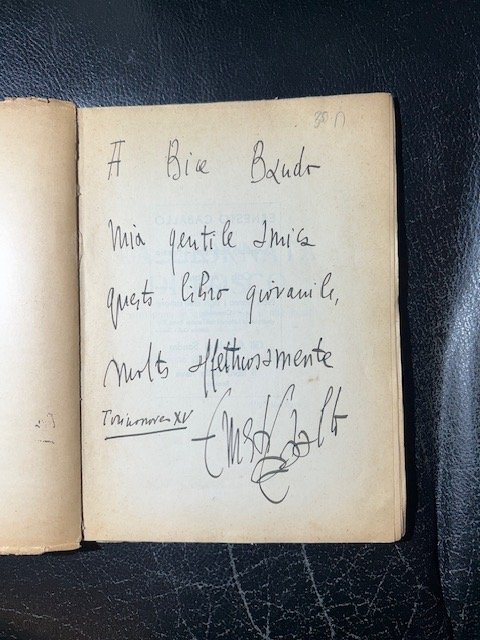 In-8°, pp. 110, brossura editoriale. Bella dedica autografa dell'autore alla prima carta bianca. Alcuni lievi strappetti ai bordi della brossura.