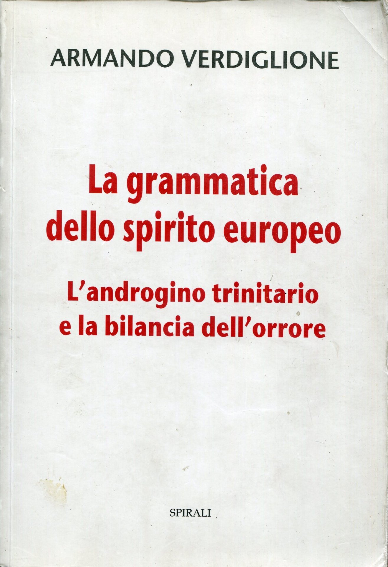 La grammatica dello spirito europeo. L'androgino trinitario e la bilancia dell'orrore | Libri antichi e moderni | Verdiglione Armando, ,Verdiglione Armando