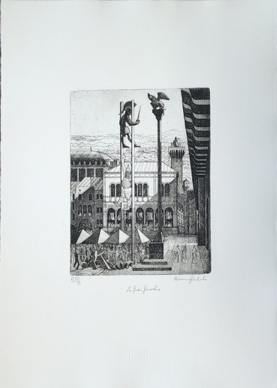 Tiratura XLIV/L. Timbro a secco in basso al centro. acquaforte inciso cm. 17,8 x 23,9 - foglio cm. 35 x 49,7 Buono (Good) Buon es..