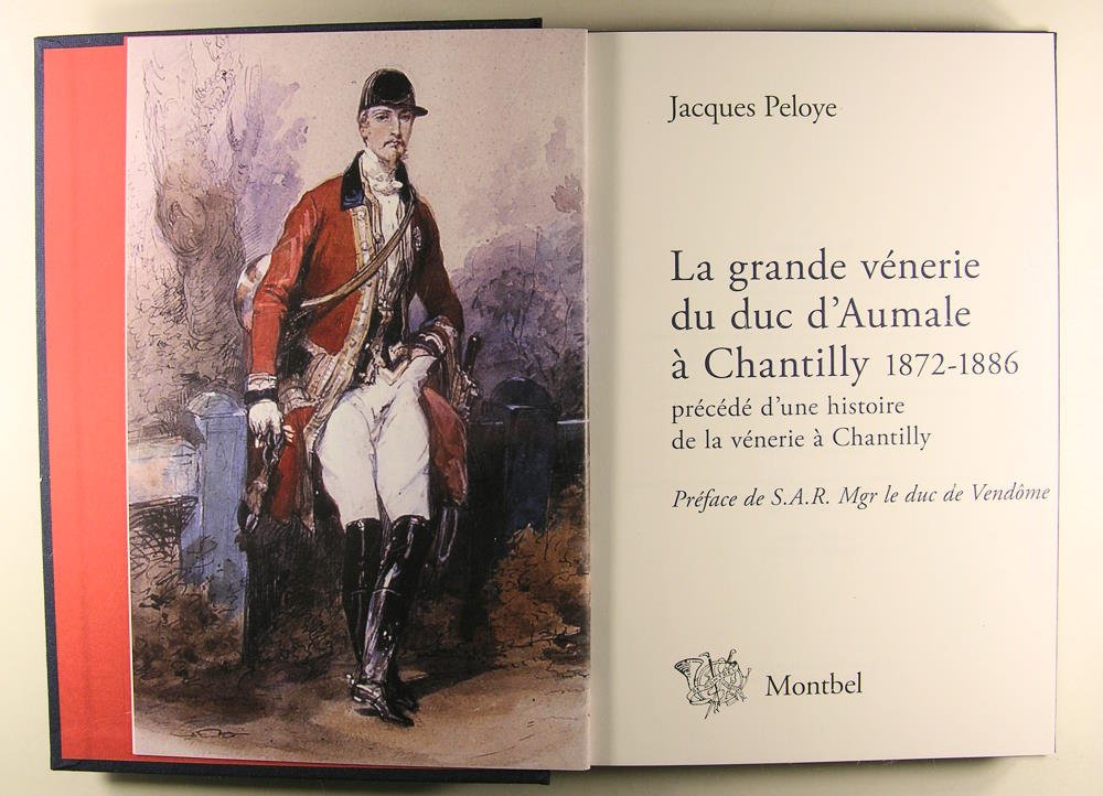 Paris, Montbel, 2012. In/8, 17 x 24 cm, relié pleine toile bleu roi avec fers dorés, étui, 192 pages. Un des 50 exemplaires de tête aux couleurs de la maison d'Orléans (toile bleu roi et intérieur de papier rouge) et signé par l'auteur. "Passionnante étude historique sur la vénerie du cerf à Chantilly, durant le second séjour du duc d'Aumale : le territoire, les écuries, les chiens, les chevaux, les hommes, la tenue, l'assistance, les rendez-vous, les Saint-Hubert, les attaques, les parcours, le change, les curées, etc. Le duc d'Aumale, dernier fils de Louis-Philippe, hérite du château et du domaine de Chantilly à la mort de son parrain, le prince de Condé. Il restaure magnifiquement le château et les écuries, installe sa meute et ses chevaux, achetés en Angleterre, agrandit encore le très vaste territoire de chasse et remonte l'équipage de cerf, devenant l'un des plus grands veneurs de son temps. Très nombreuses reproductions en couleurs: peintures, sculptures, photos, objets, documents, etc. Avec des reproductions de trois documents inédits: le Registre des chasses du duc d'Aumale, les Carnets de chasse du vicomte Henri Vigier et le Catalogue de la vente de l'équipage en 1886. Tableau généalogique et études sur les propriétaires de Chantilly depuis le XIIIe siècle. Chronologies, bibliographie, etc. D'une famille cantilienne depuis plusieurs générations, Jacques Peloye a publié des ouvrages érudits sur les forêts de Chantilly, du Lys et d'Halatte et sur les Grandes-Écuries."