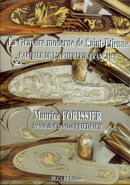 P.E.C.A.RI Editions, 1998. Grand in/4 en cartonnage éditeur illustré en couleur, illustrations en noir et en couleur, 219 pages. Texte en français et en anglais. Superbe ouvrage qui retrace succinctement l’histoire de la gravure pratiquée à St Etienne, puis présente 26 graveurs des armes de chasse de la seconde moitié du 20è siècle : finesse d’exécution et création plastique font de véritables oeuvres d’art un objet utilitaire.