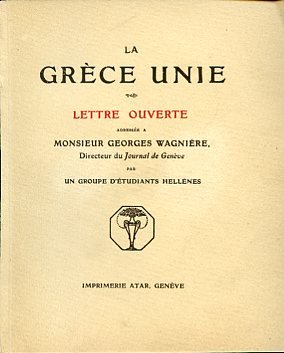 La Grèce unie. Lettre ouverte adressée a Monsieur Georges Wagnière Directeur du Journal de Genève par un groupe d'étudiants hellènes
