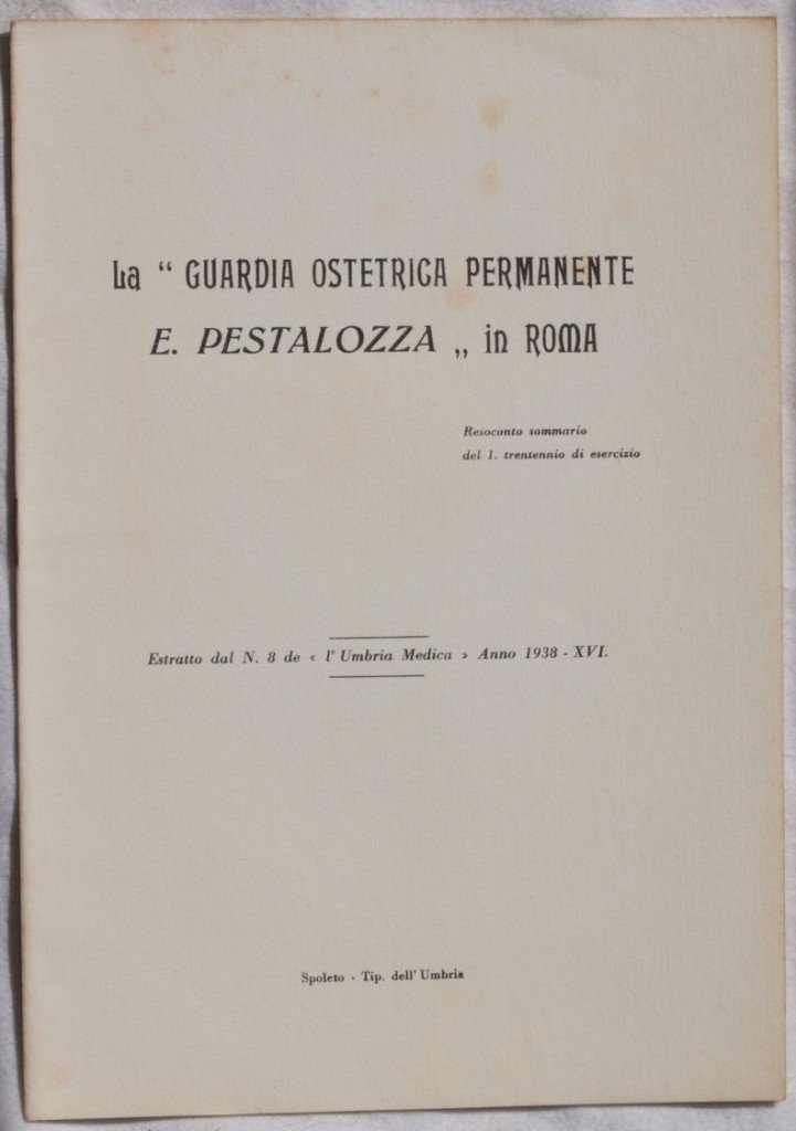 LA GUARDIA OSTETRICA PERMANENTE E. PESTALOZZA IN ROMA RESOCONTO SOMMARIO DEL I TRENTENNIO DI ESERCIZIO ESTRATTO DAL N. 8 DE "L'UMBRIA MEDICA ANNO 1938 XVI