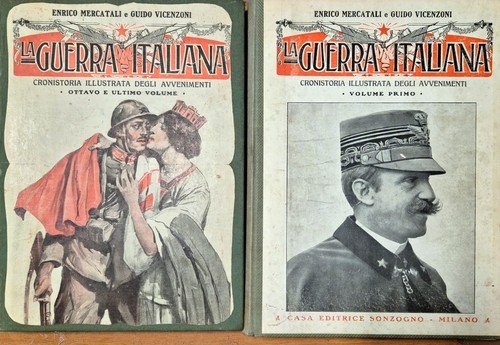 Casa editrice Sonzogno, 1915, 1920. XII, 400 + XVIII, 400 + XXII, 400 + XXIII, 400 + XX, 400 + XXII, 400 + XXIII, 400 + XVIII, 400 pagine, illustrazioni in bianco e nero nel testo. Copertine editoriali in tutta tela. Stato di conservazione: molto buono (pagine ingiallite, firma di appartenenza, copertine un po' sciupate) Libro usato militaria storia I guerra mondiale 1915 1918