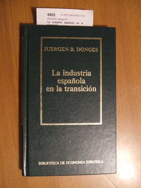 DONGES, Juergen B. La industria española en la transición. Orbis. Barcelona. 1985 182 p. (20 cm) Enc. cartoné. símil piel K (Ref.4802) historia contemporanea españa transicion economia