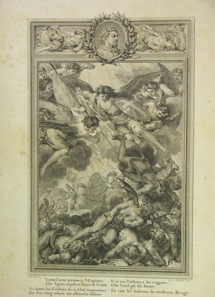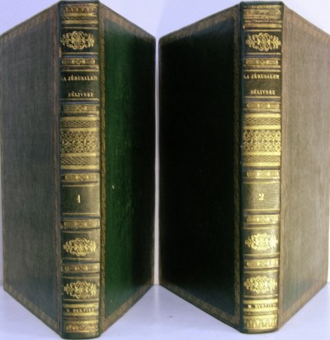 A Paris, de l’imprimerie de P. Didot l’aîné, 1796. 2 volumes grand in/4 reliure demi-basane verte, dos à nerfs à caissons dorés, plats en simili maroquin long grain avec roulette dorée, volume 1 : xxiij de préliminaire, 274 p., 20 planches - volume 2 : 278 p., 20 planches. Planches de Cochin gravées par St Aubin. Tome 1 : Tome 2 : 31 feuillets restaurés (galeries d’insectes), 7 et 9 feuillets tachés dans l’angle inférieur droit, auréole sur les 10 derniers feuillets. Baour publie d'abord des satires, puis des traductions (1795) en vers de la Jérusalem délivrée et des poésies d'Ossian. Il fait représenter avec succès la tragédie d' Omasis ou Joseph en Égypte et donne des opéras : Jérusalem délivrée, Aminte, Alexandre à Babylone. Il s'exerce dans tous les genres littéraires, même dans l’Épopée (l’Atlantide, 1812). En 1819, il refond sa traduction du Tasse qui est restée son œuvre principale. Dans ses dernières années, devenu aveugle, il met en vers le poème de Job. Il est élu membre de l'Académie française le 29 mars 1815.