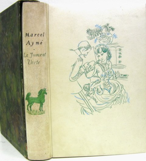 Edition NRF Gallimard, s.d. (1936). In/4 reliure à la bradel simili velin dos et plat supérieur illustrés en couleurs sous étui, couvertures et dos conservés, doré sur tête, illustrations de Chas Laborde : frontispice à l'eau-forte et 32 dessins en couleurs in-texte. Reliure peinte, avec salissures. Monod 688. Exemplaire numéroté sur alfa. Le chef-d'oeuvre de Marcel Aymé. L'action se déroule à la campagne. Un homme s'aperçoit un jour qu'il possède une jument verte. Une aubaine. L'auteur utilise un langage cru et mordant pour dépeindre une réalité non moins sordide et brutale. Une oeuvre cynique, truffée d'humour noir.Chas Laborde, né Charles Laborde, le 8 août 1886 à Buenos Aires, de parents français, et mort le 30 décembre 1941 à Paris, écrivain, journaliste, graveur et illustrateur français. Chas Laborde a contribué à la plupart des journaux de son temps comme L'Assiette au Beurre, La Baïonnette, Le Courrier français, Le Crapouillot, Paris-Midi et Paris-Soir…En plus d'un travail d'illustrateur prolifique (plus de 60 ouvrages référencés), il a réalisé des dessins publicitaires et des décors de théâtre.