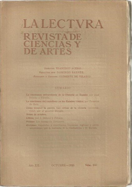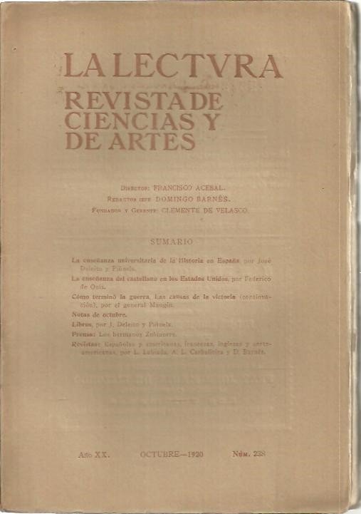 LA LECTURA. REVISTA DE CIENCIAS Y DE ARTES. AÑO XX. NUM. 238.