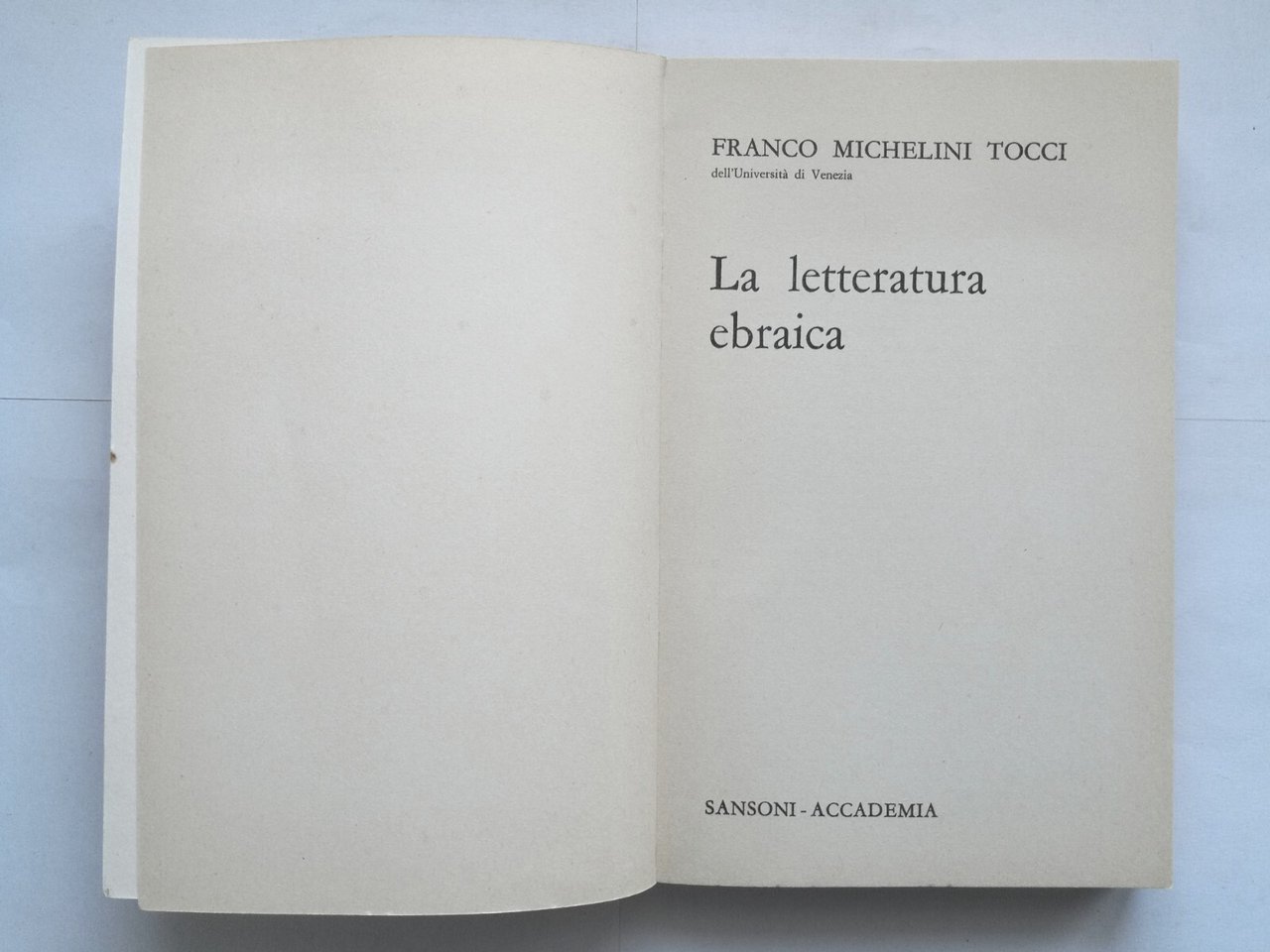 LA LETTERATURA EBRAICA di Franco Michelini Tocci 1970 Sansoni Academia Libro