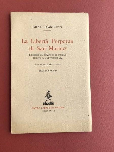La Libertà Perpetua di San Marino. Discorso al senato e al popolo tenuto il 30 settembre 1894. Con prefazione e note di Marino Rossi.