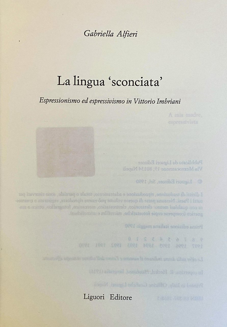 LA LINGUA «SCONCIATA». ESPRESSIONISMO ED ESPRESSIVISMO IN VITTORIO IMBRIANI | Libri antichi e moderni | Gabriella Alfieri