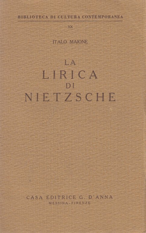 In-8 (Cm 22 x 14), pp. 204, brossura editoriale. Collana Biblioteca di cultura contemporanea, XX. La traduzione delle liriche è stata condotta parte sull'edizione di Lipsia, parte su quella di Monco curata da C.A: Emge, Oehler, Splengler, Mette ed altri; è stata tenuta presente anche l'edizione n 7 voll. el Beaumler e la scelta di Walther Linden.